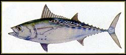 Remarks: schooling fish that migrates northward in spring, returning to southerly waters when water temperature drops below 70 degrees F; spawns OFFSHORE, spring through summer; feeds on small fish and squid.
