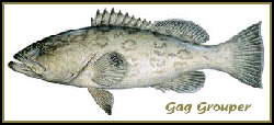 Remarks: forms spawning aggregations in water no shallower than 120 feet in Middle Grounds area, January through March; current research to identify similar aggregations off Atlantic coast is ongoing. Young gags are predominantly female, transforming into males as they grow larger; feeds on fish and squid.